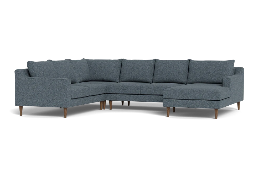 The Alex U-Sectional with Chaise is a perfect mix of mid-century, modern style and cozy comfort. It has a sleek design with sharp lines on the arms that gently curve at the back. Back and seat cushion covers feature hidden zippers for easy removal and cleaning. ✏️ Need custom dimensions